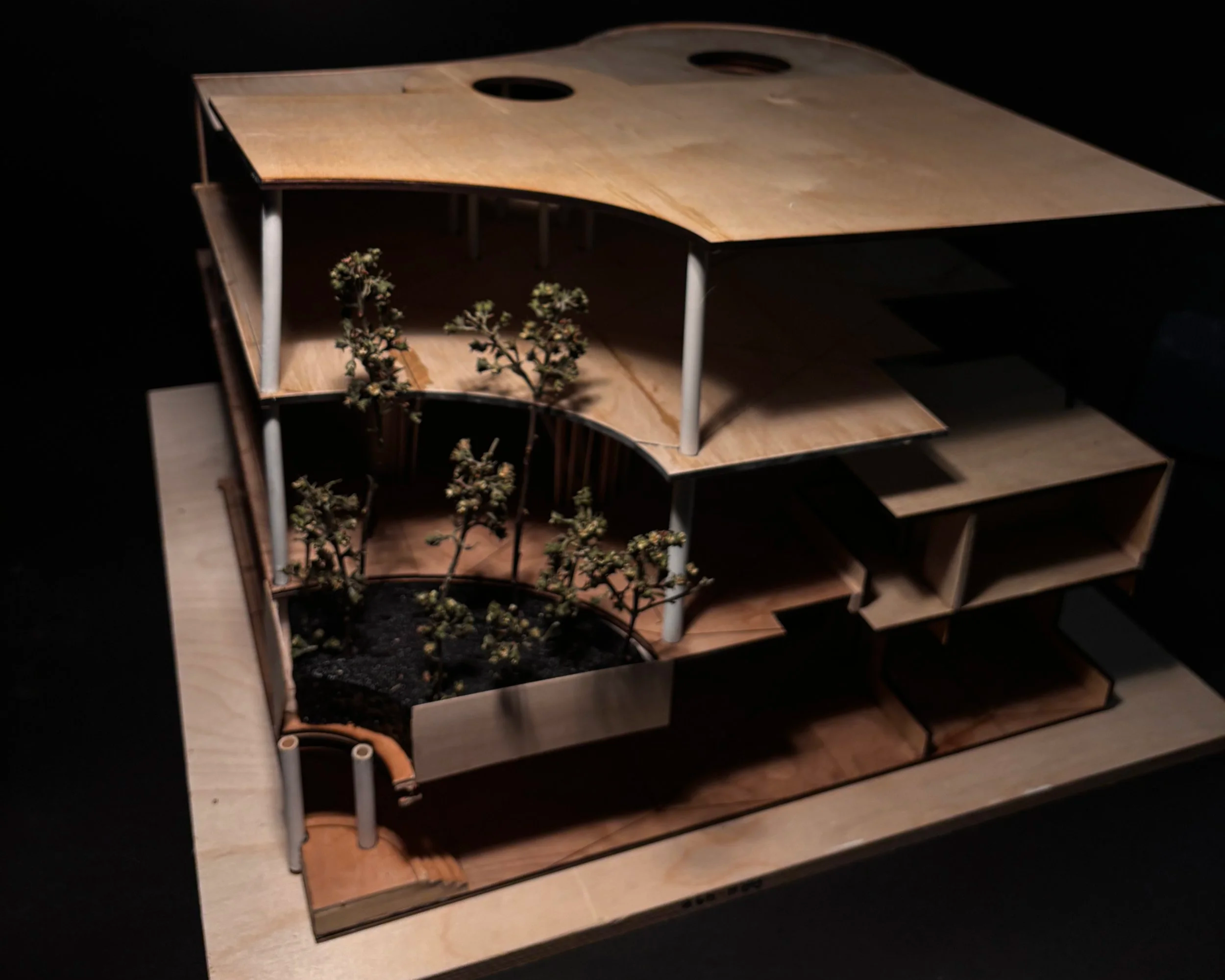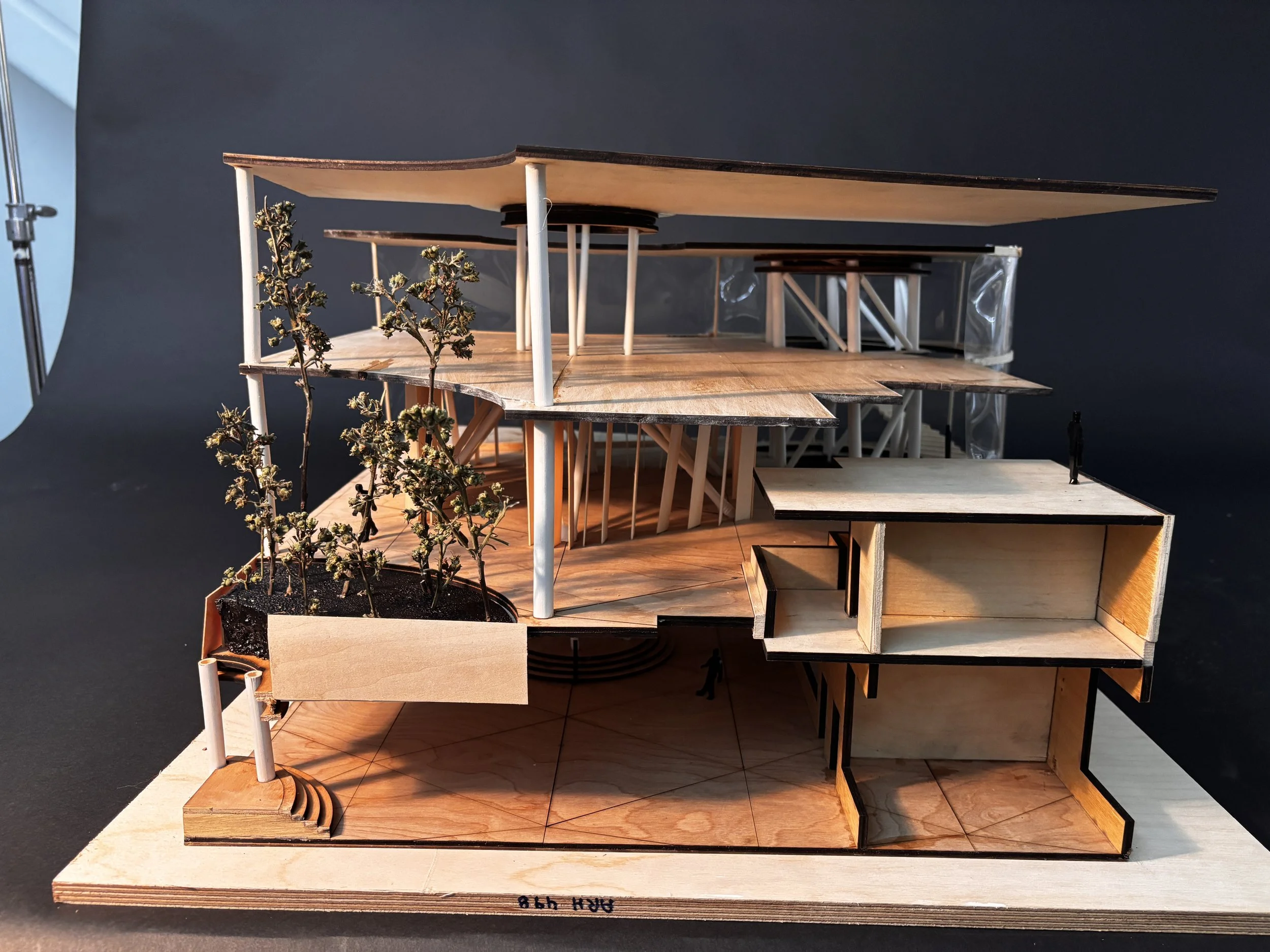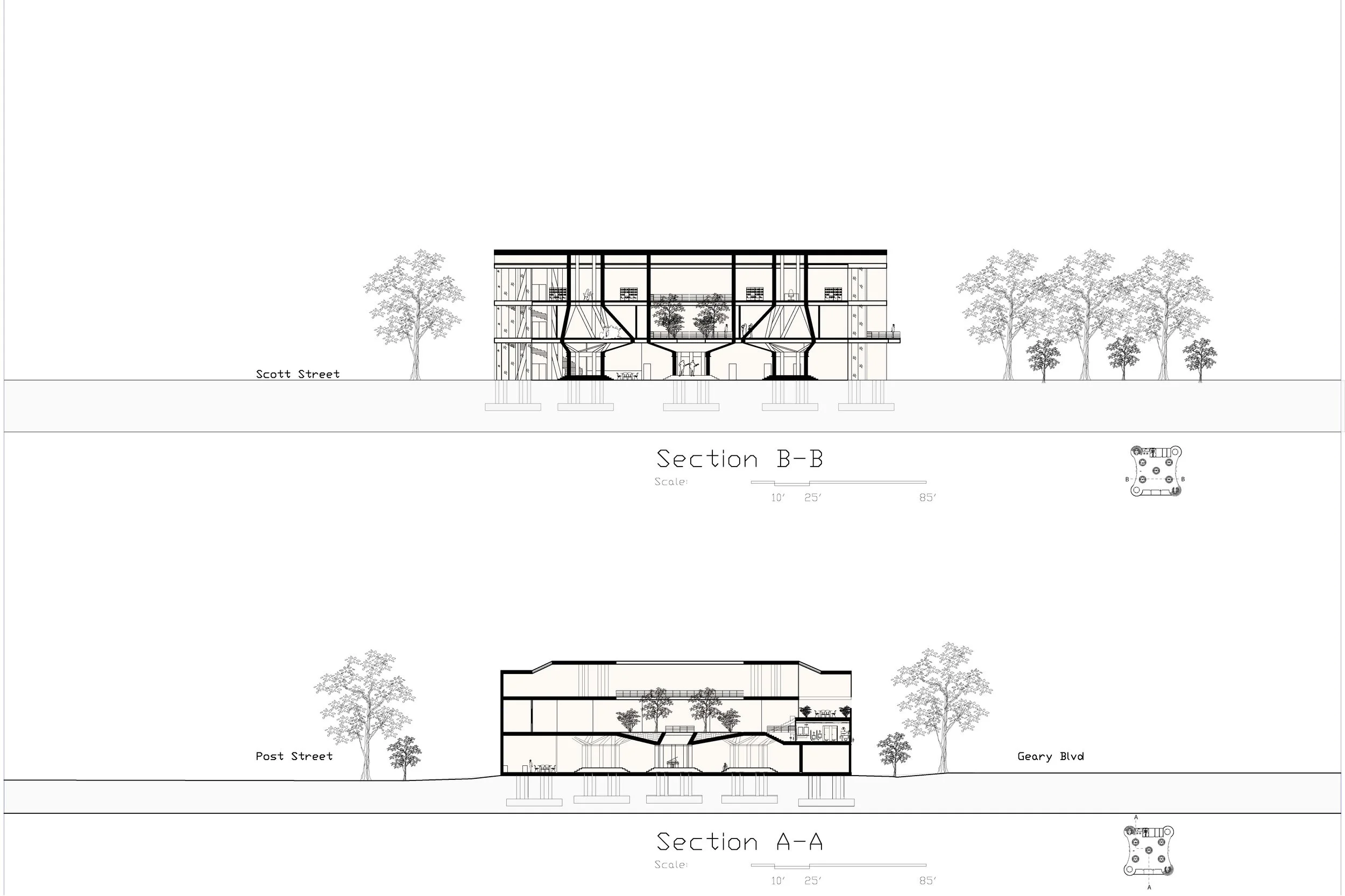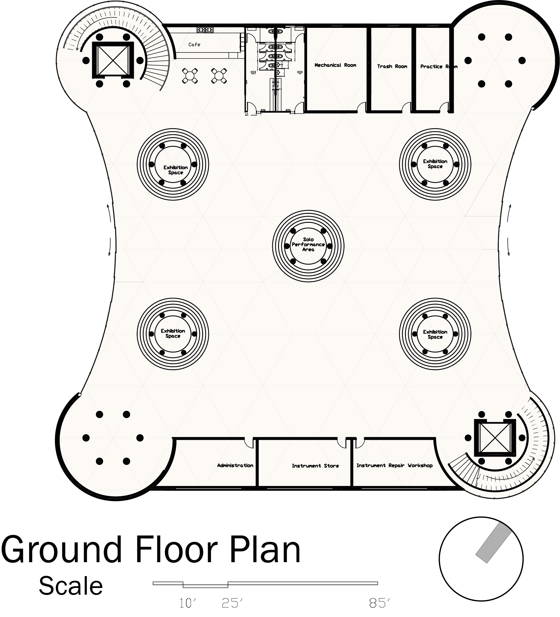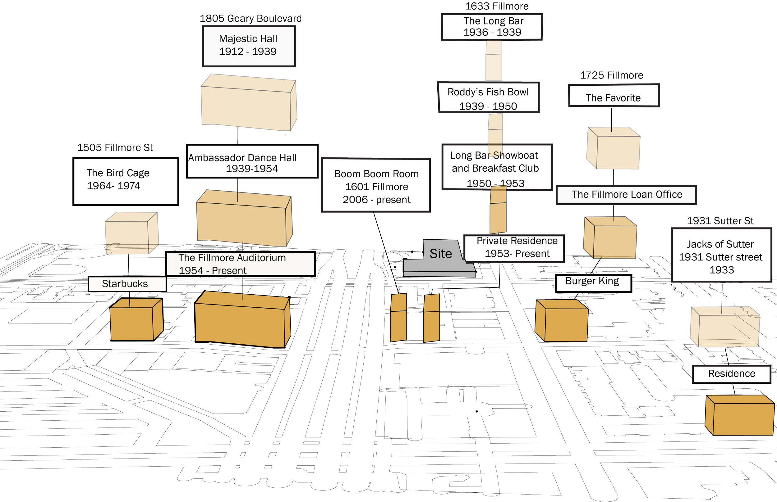 This building is located in the Western Addition, San Francisco, California. This area previously known as the Harlem of the west was renowned for its jazz culture. Through the years this culture has been somewhat lost. This building is the spark that reignites this jazz culture to the community. The first level of this building features performance and exhibition spaces. This then leads to learning areas on the second floor; including classroom and studio spaces Finally the third floor features the main library space accompanied by multiple study rooms.