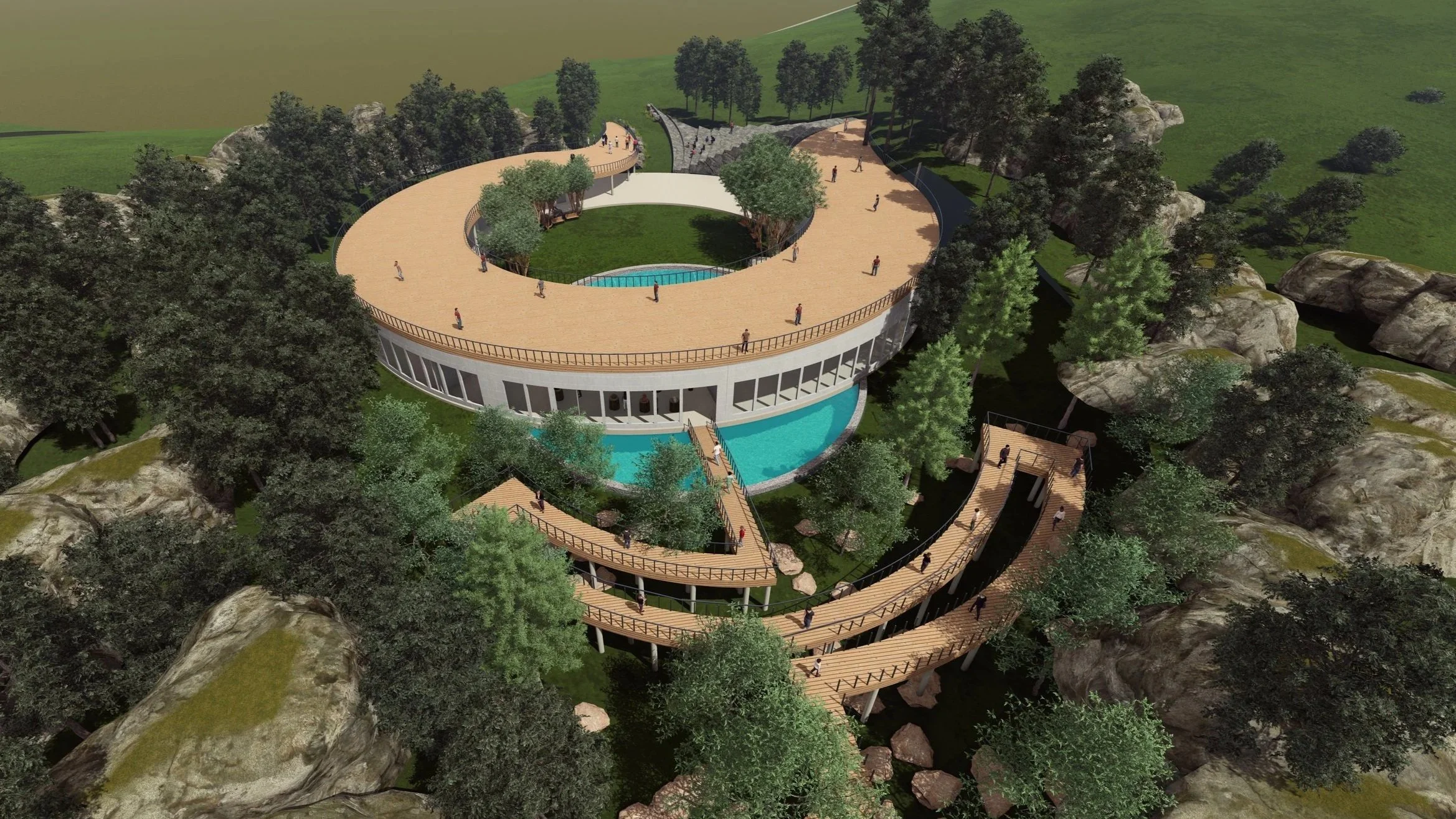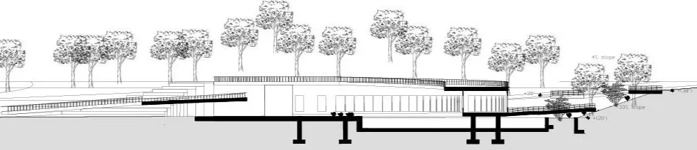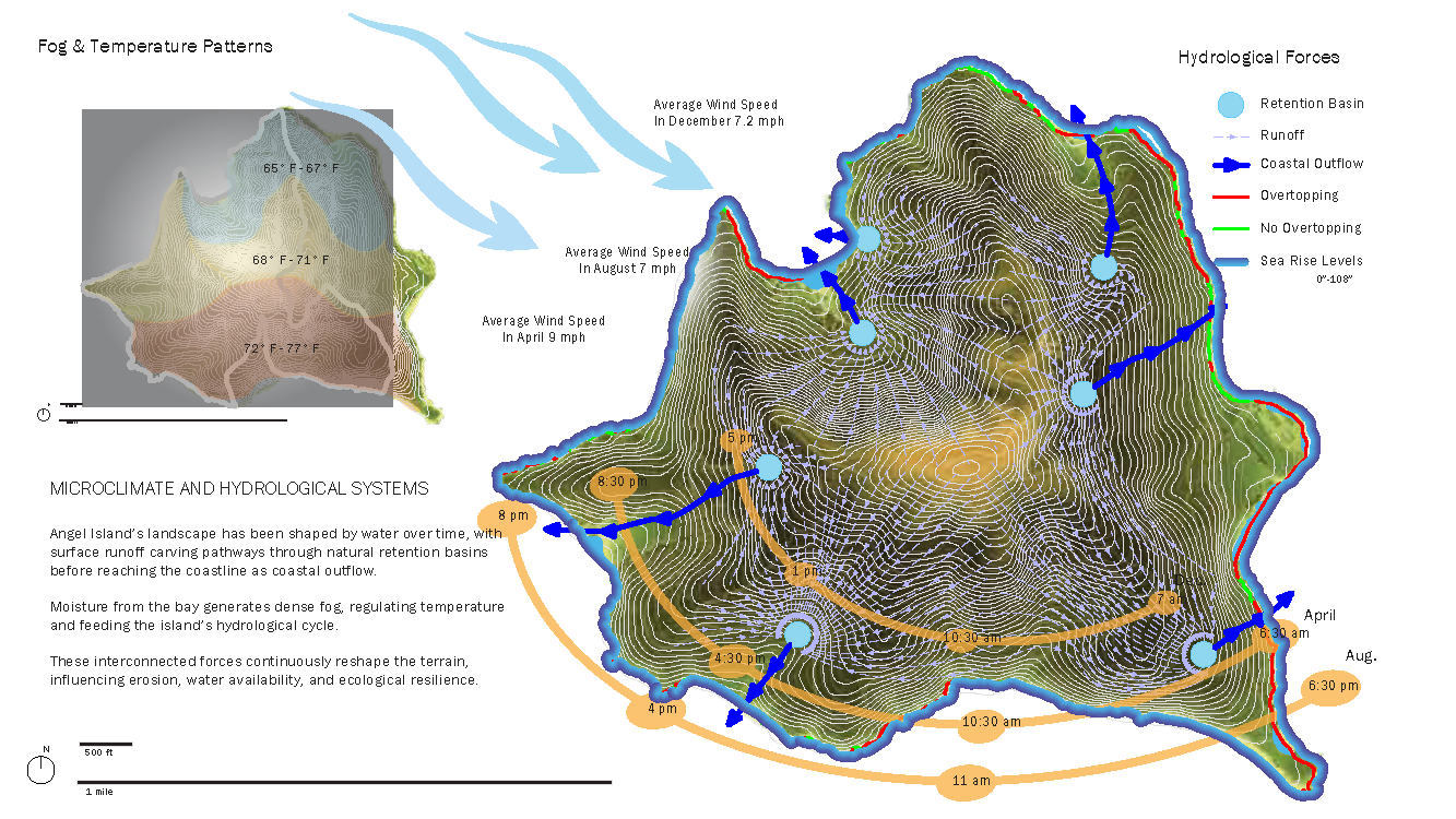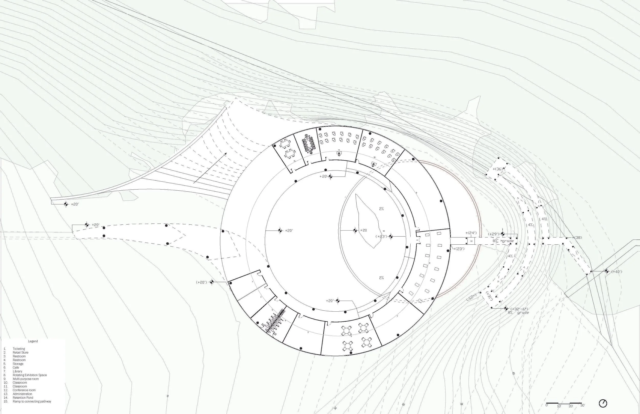 The Circle is a visitor center on the historic West Garrison site of Angel Island in San Francisco Bay. Designed as an extension of the island’s landscape, the project derives its form from existing topography. Gentle terracing and low, curving geometries settle into the slopes, while circulation emphasizes movement and discovery. Visitors move fluidly between indoor exhibitions, sheltered outdoor paths, and elevated viewpoints that echo hiking the island. Green roofs extend the natural vegetation, reinforcing architecture as landscape.